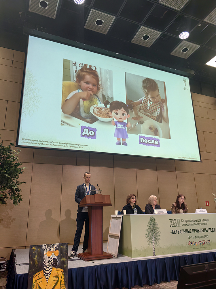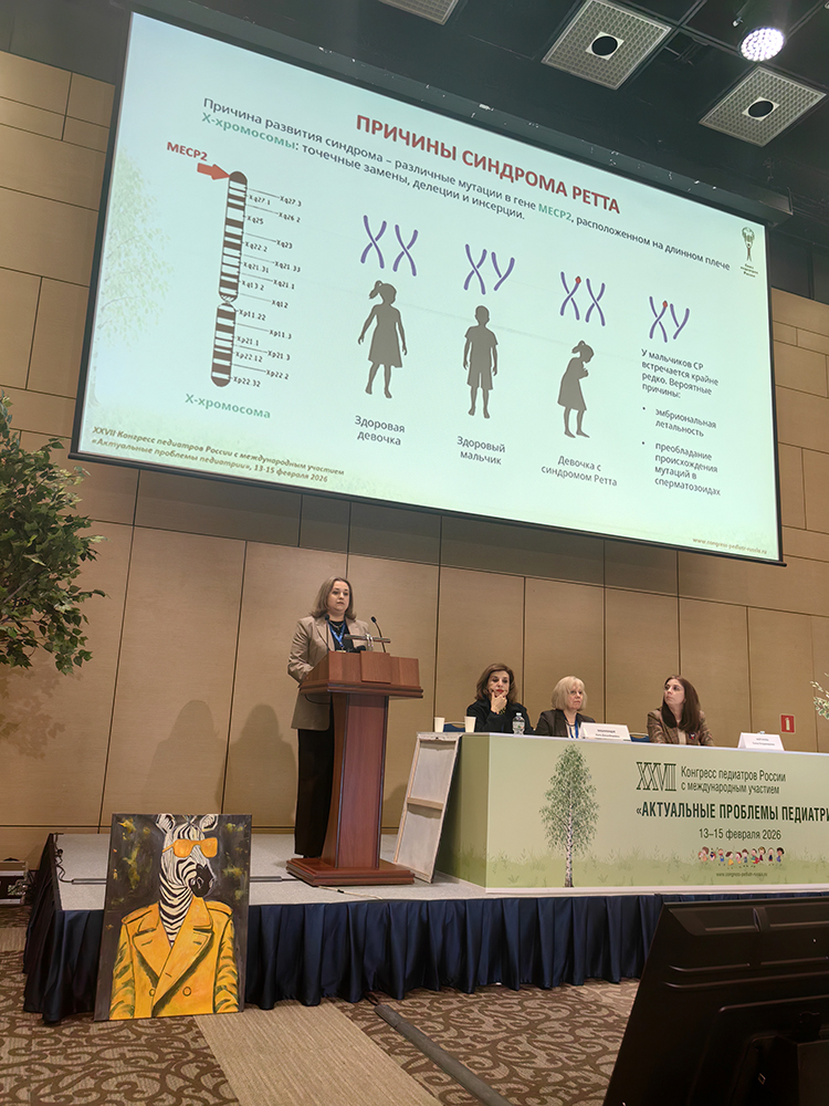 С13 по 15 февраля 2026 года в Москве в Международном Торговом центре (в гибридном формате) состоялся ХХVII Конгресс педиатров России с международным участием «Актуальные проблемы педиатрии», в рамках которого прошел Евразийский форум по редким болезням. В течение трех дней в отдельно выделенном зале проходили выступления врачей и ученых, посвященные орфанной проблематике. Наш фонд в лице Андрея Павлова и Натальи Осиповой также принял участие в данном Форуме, в секции «Голос пациентов». В наших докладах были освещены особенности течения синдрома Ретта, приведена небольшая статистика по результатам анкетирования родительского сообщества, а также сказано несколько слов о целях и работе нашего фонда. Выражаем большую благодарность Нато Джумберовне Вашакмадзе за возможность участия Фонда в таком масштабном мероприятии.